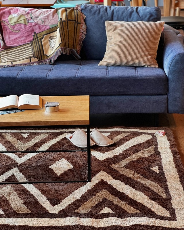 毛足が短く、ふわふわとした触り心地で扱いやすいリビングラグ。 柄はUSプリミティブな雰囲気のBasShuらしいトーンは抑えつつも一癖ある個性的なデザインでお部屋の印象を大きく変えてくれます。 床暖・ホットカーペットOK 手洗いOK サイズ:140×200cm 素 材:ポリエステル100% ※裏面:滑り止め仕様
