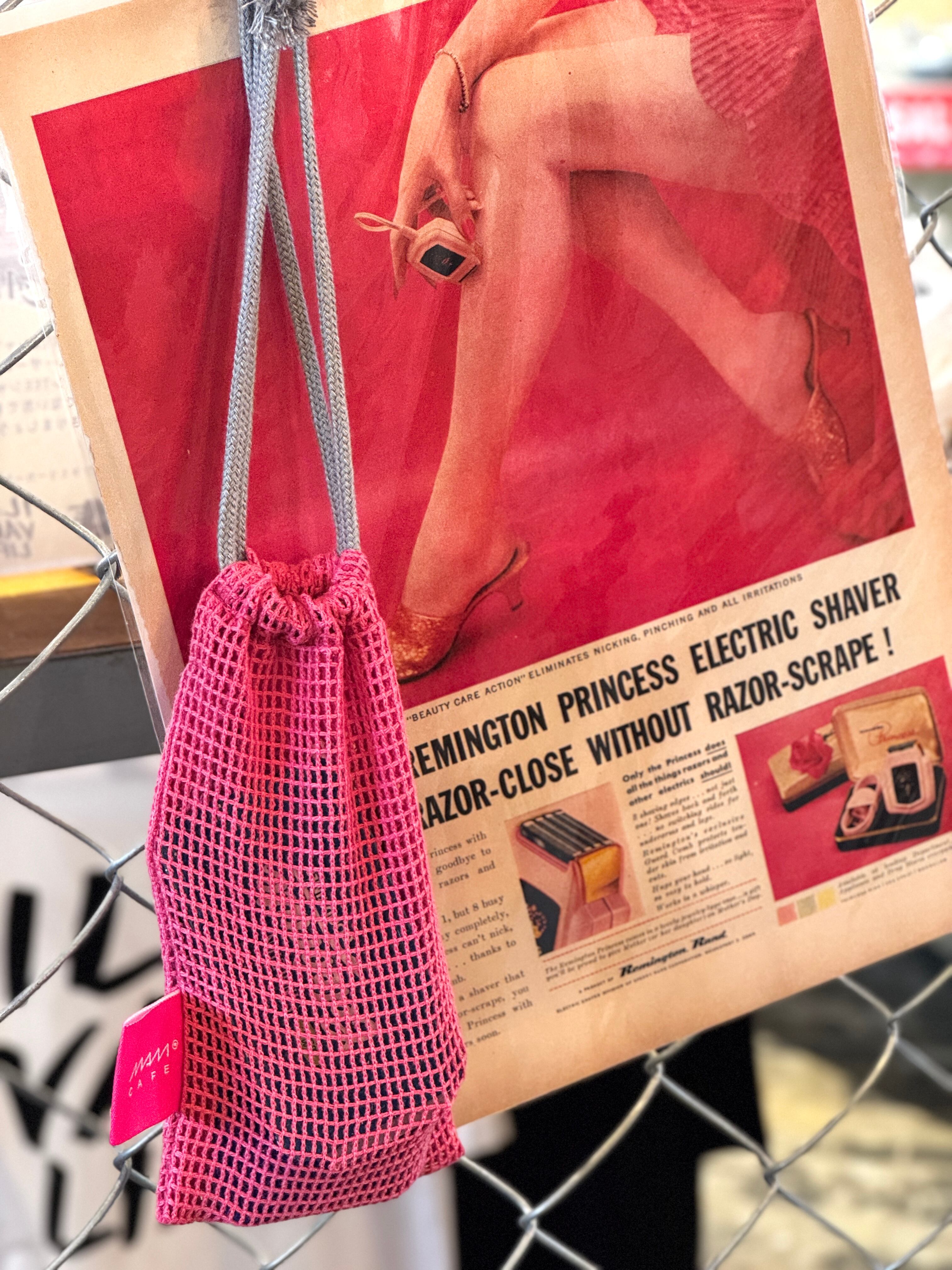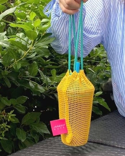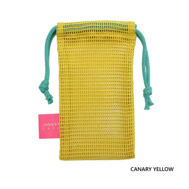 体を洗うボディタオルに使われる和歌山県産コットン100%のメッシュ生地でできたドリンクポーチ。