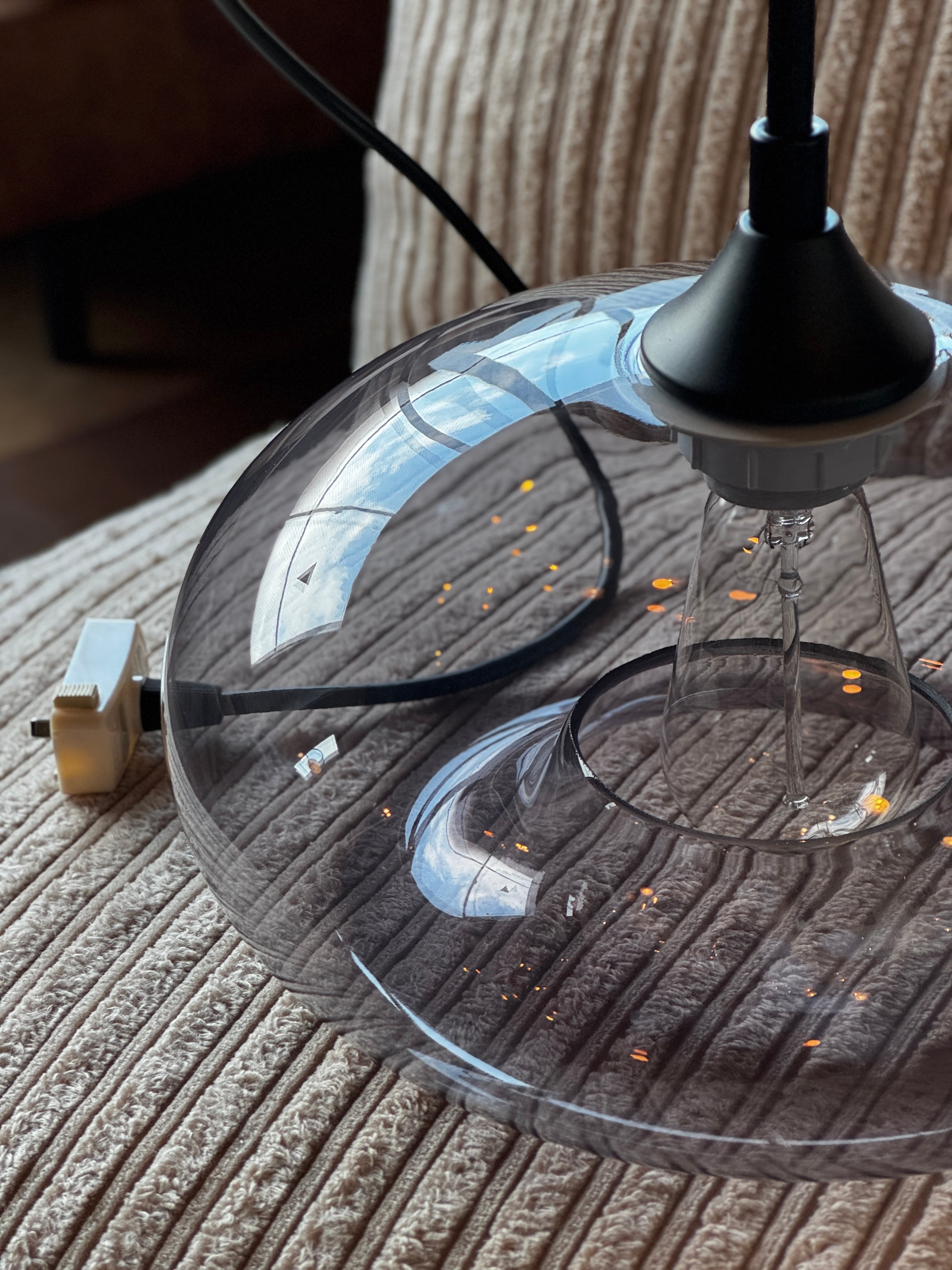 球体のようなガラスの曲線が陰影を描き、光を魅力的に見せます。