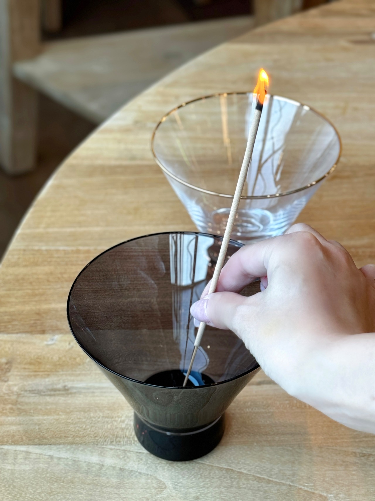 金縁とガラスのフォルムが美しいインセンスホルダー