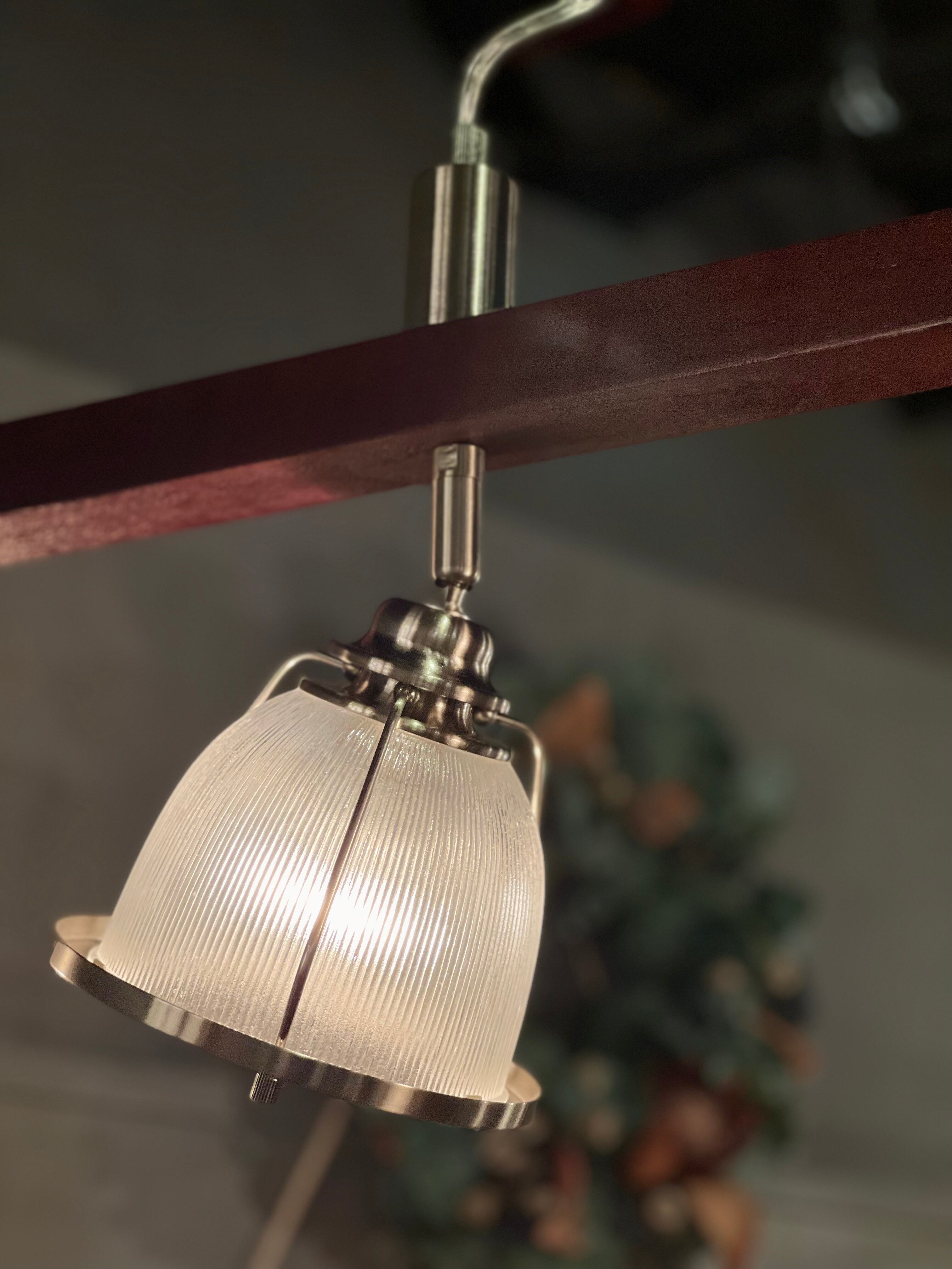 ガラスシェードは、縦ラインにカットを入れる事で光を拡散させてくれます。
