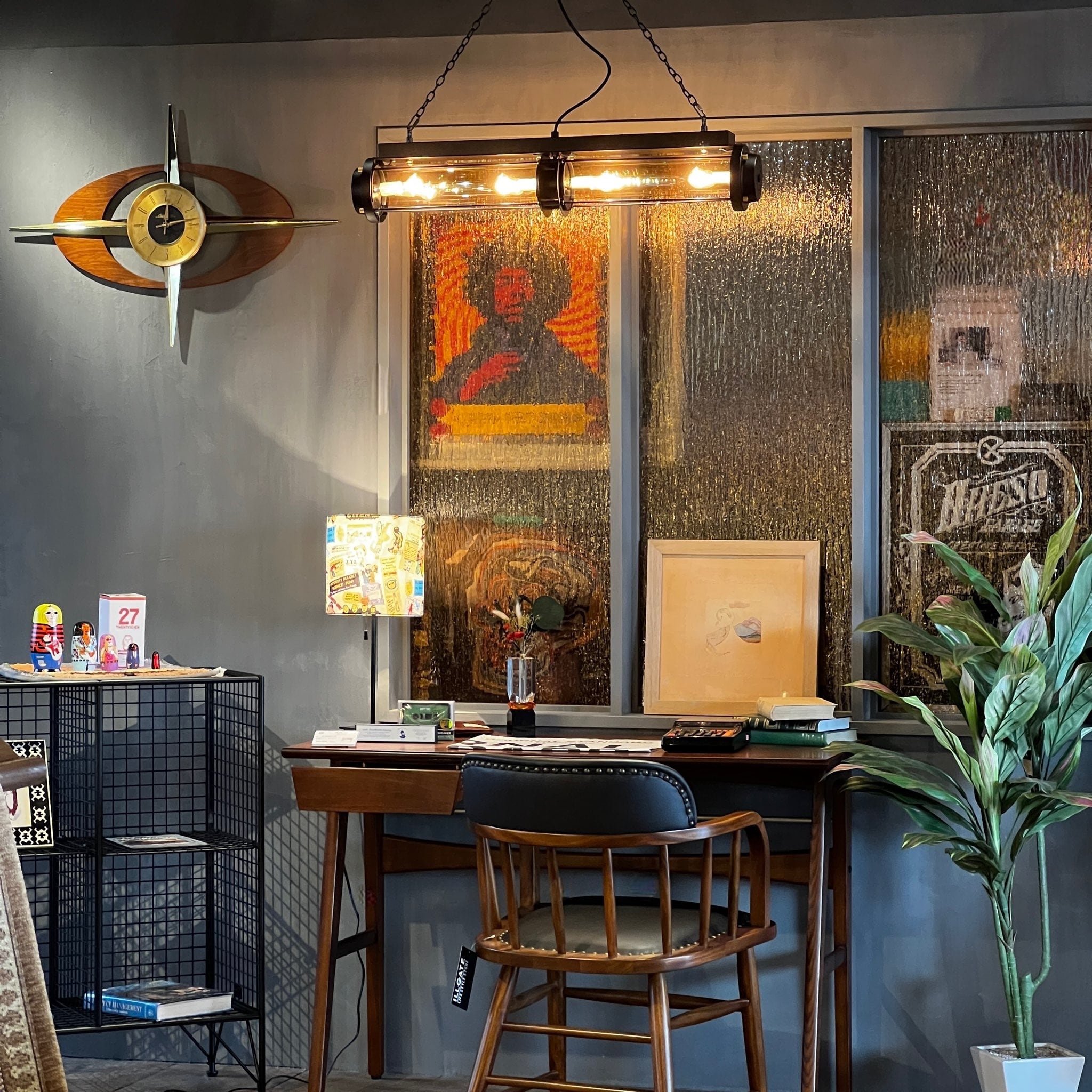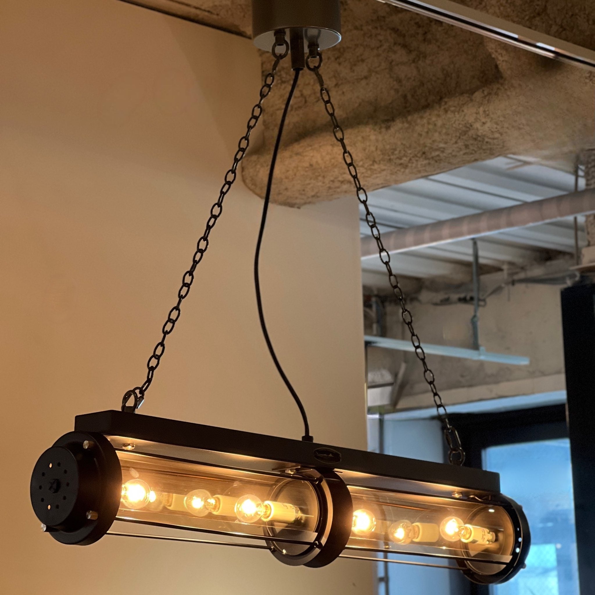 海外のガレージにありそうなインダストリアル感漂う照明です。
