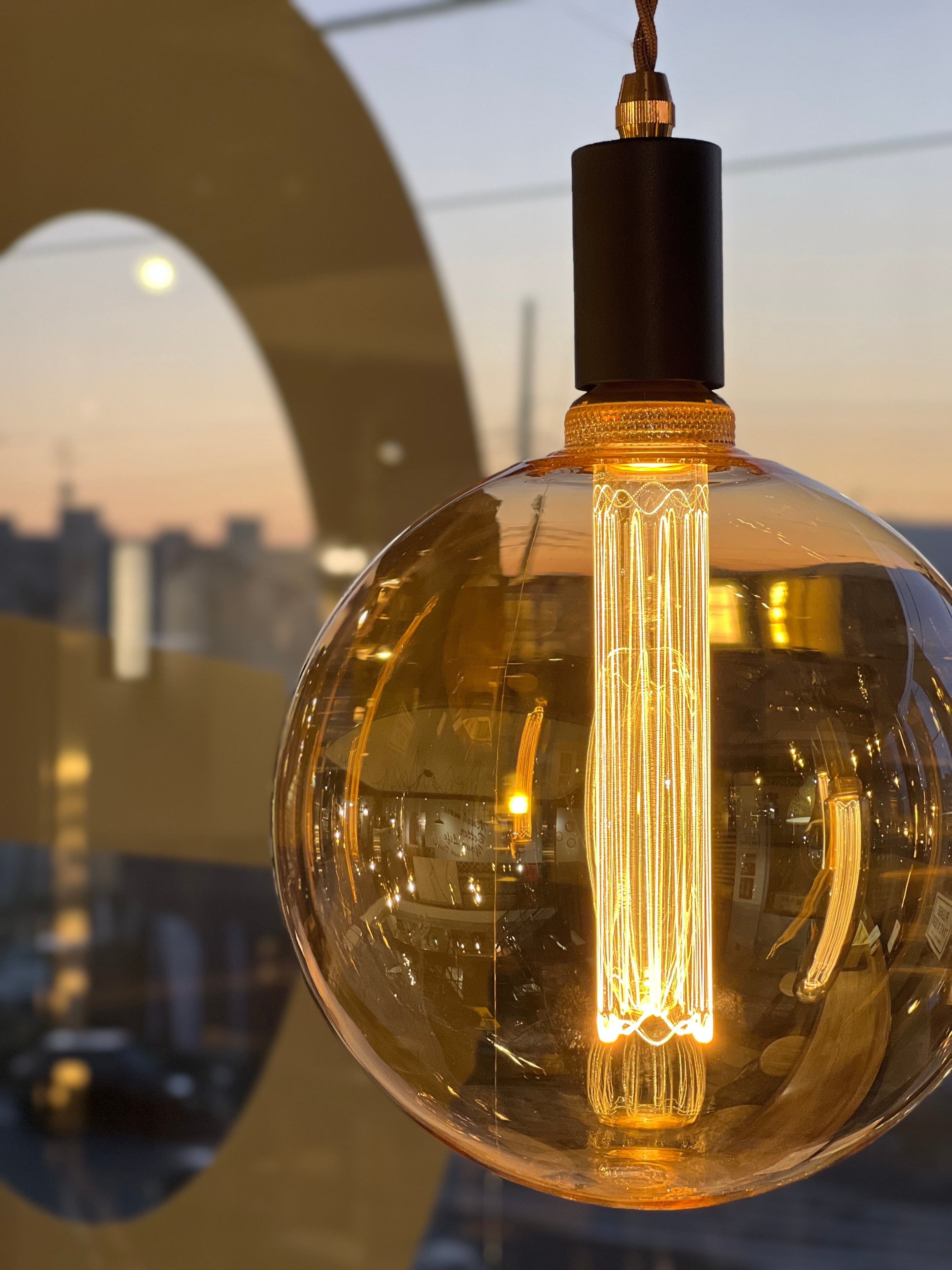 特殊なレーザー技術によって施されたライン加工により、まるでカーボン電球のフィラメントのような繊細で暖かな灯りをLEDで再現したノスタルジアバルブ。