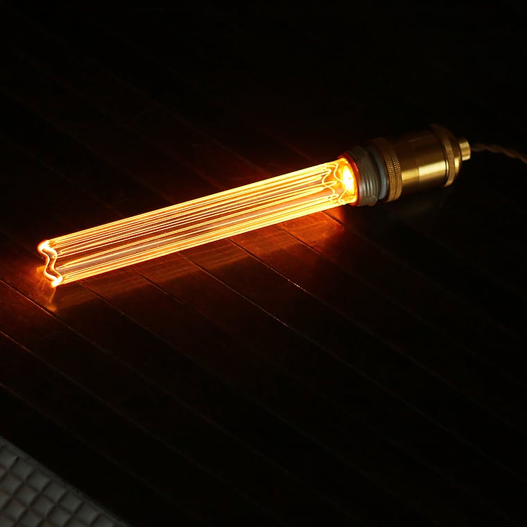 特殊なレーザー技術によって施されたライン加工により、まるでカーボン電球のフィラメントのような繊細で暖かな灯りをLEDで再現したノスタルジアバルブ。