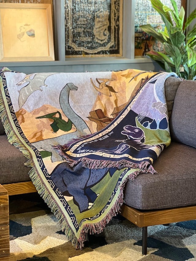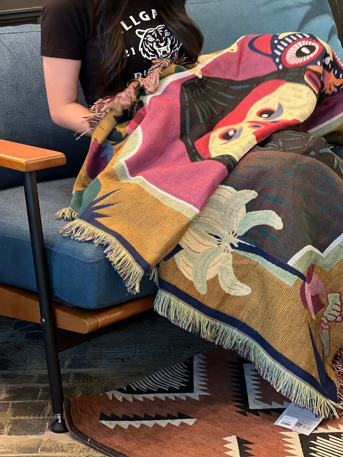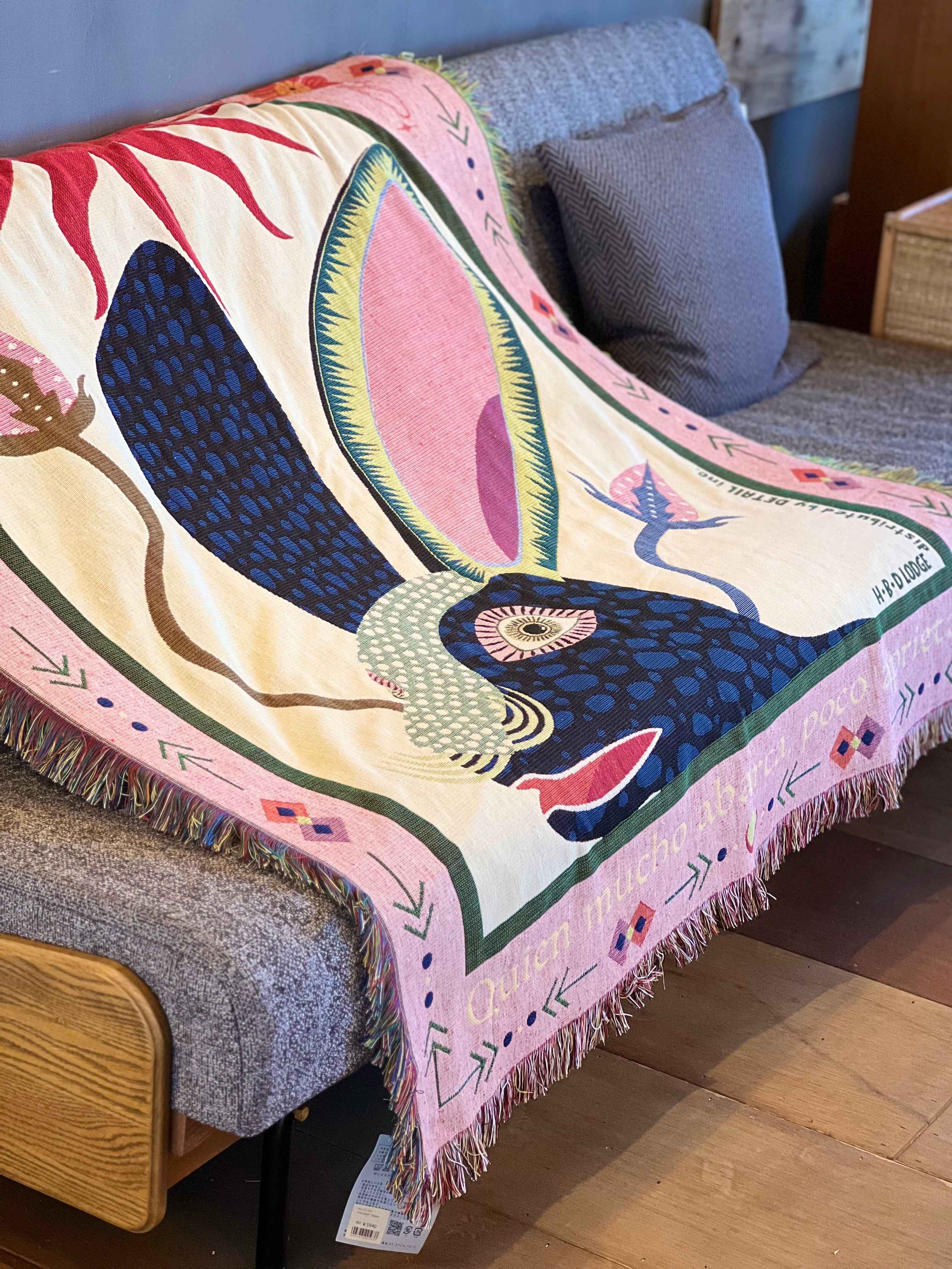 ソファやベッドにサラッと掛けて、膝掛けとして、鮮やかな色合いをいかしてアートとして壁面への装飾として斬新な使い方など様々にお部屋を彩ります。