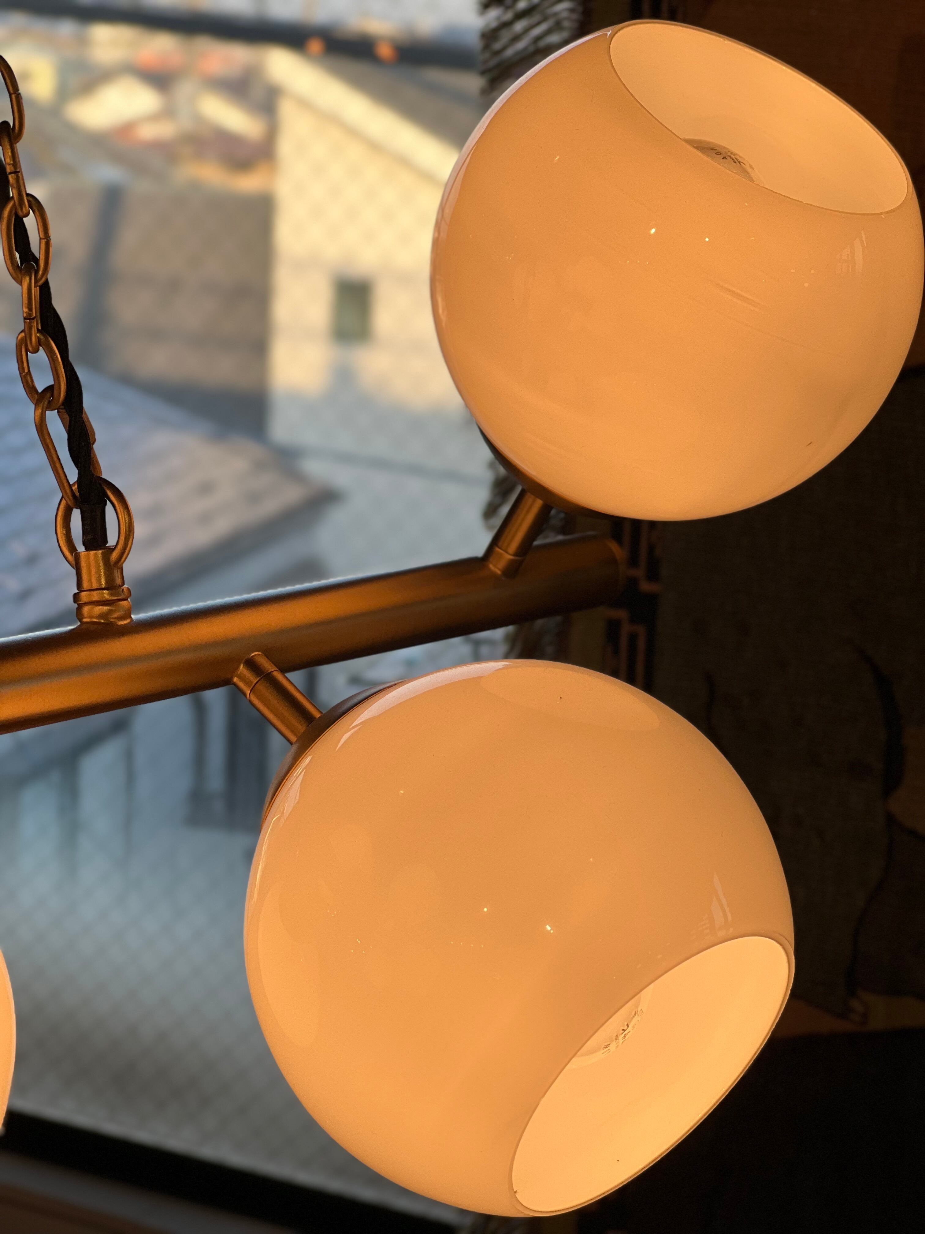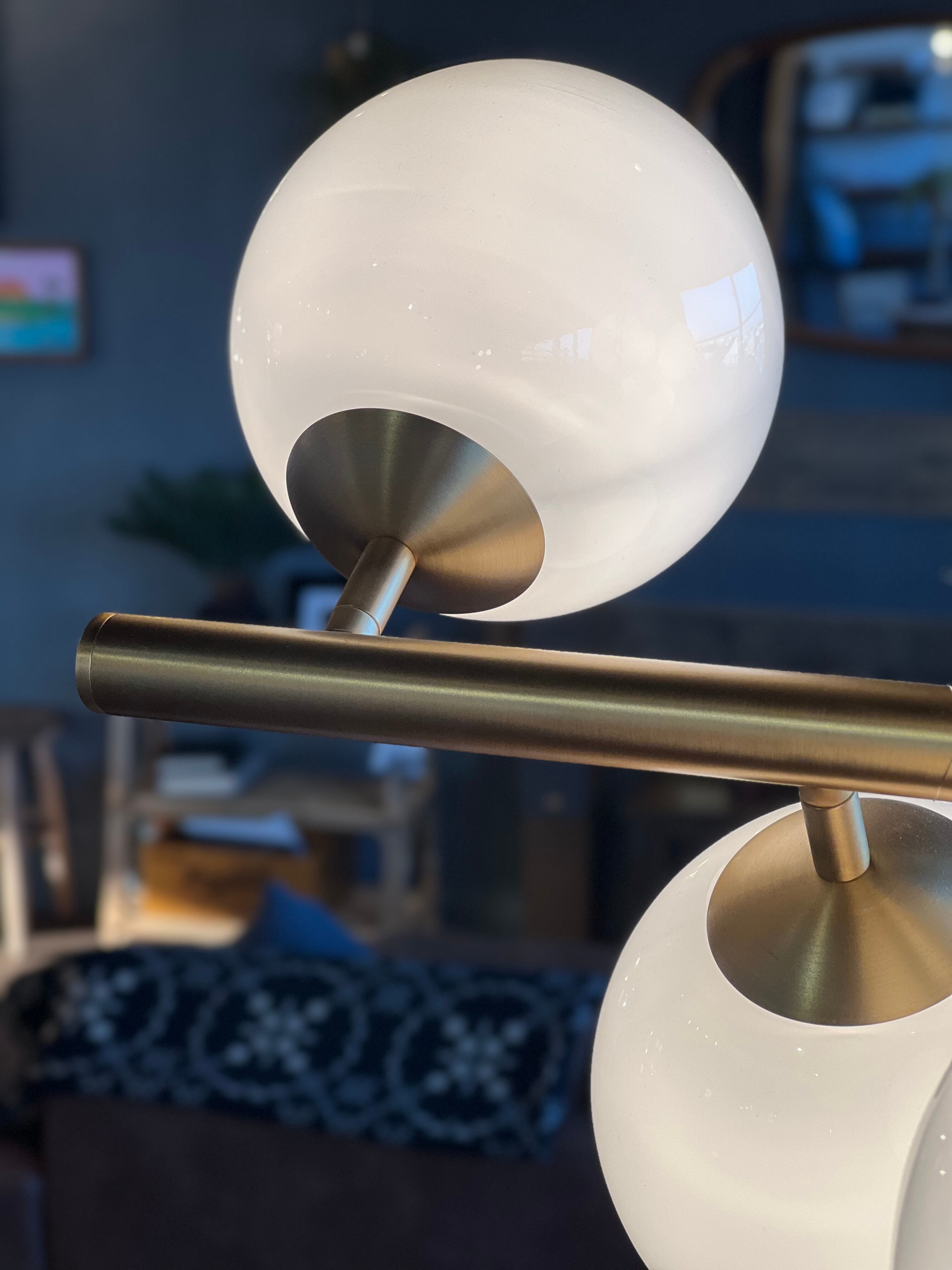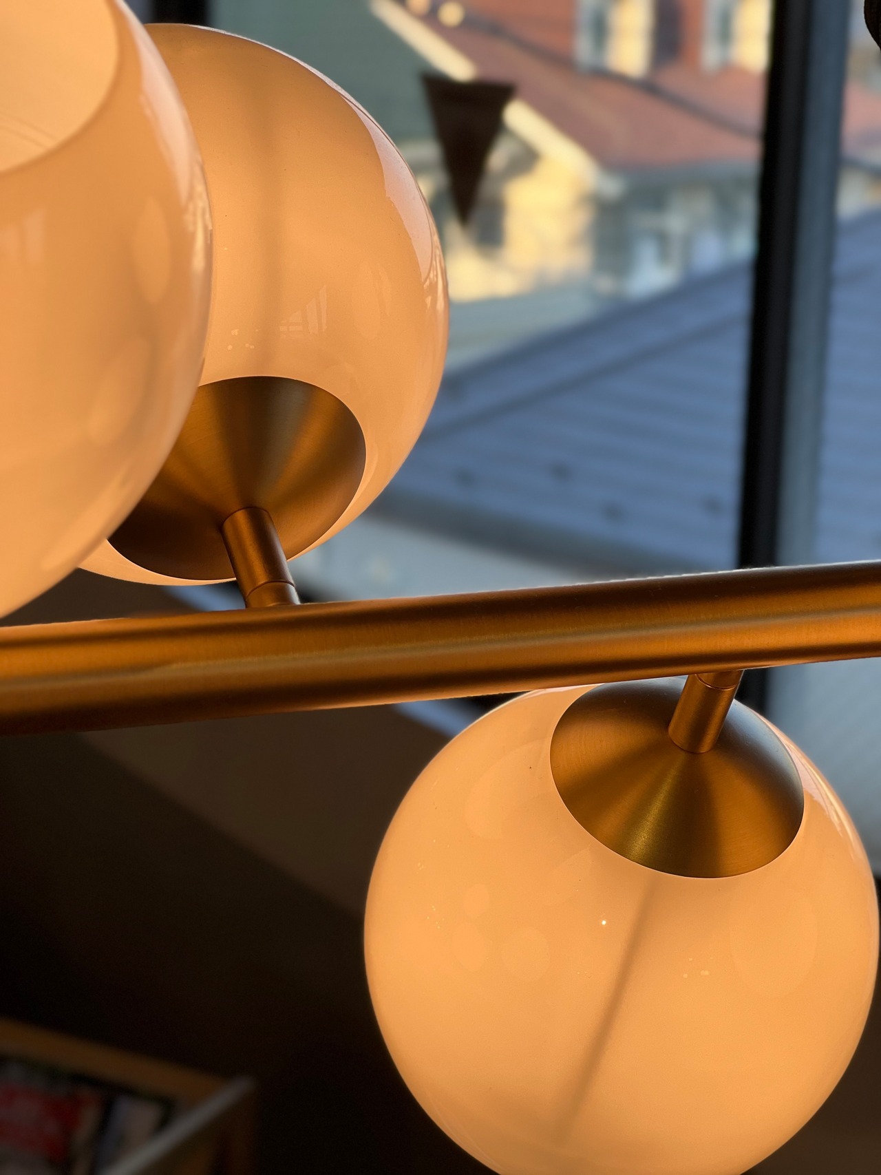 ゴールド&ホワイトは、ヴィンテージ感のあるゴールドに乳白色のガラスシェードを組み合わせ、