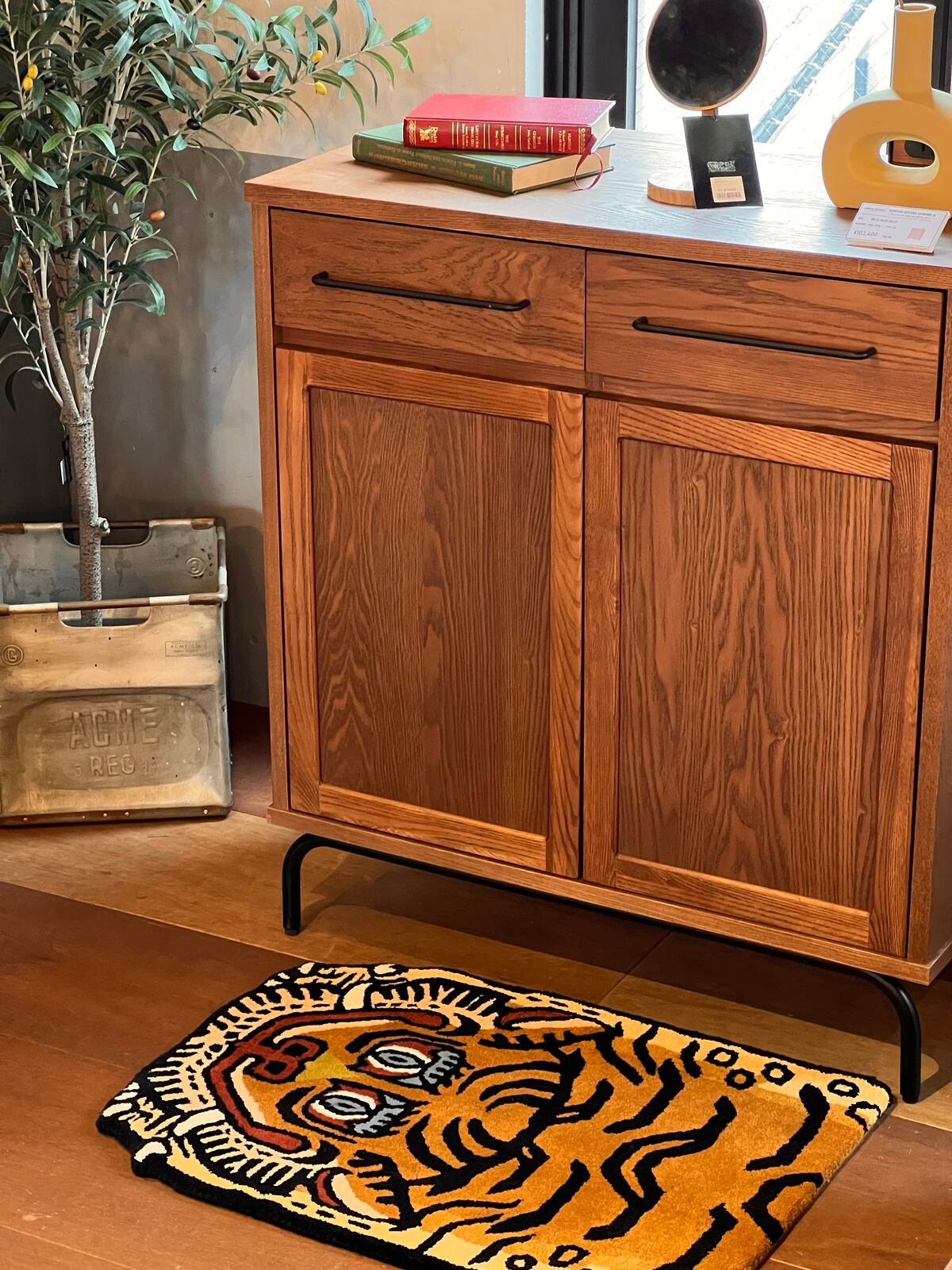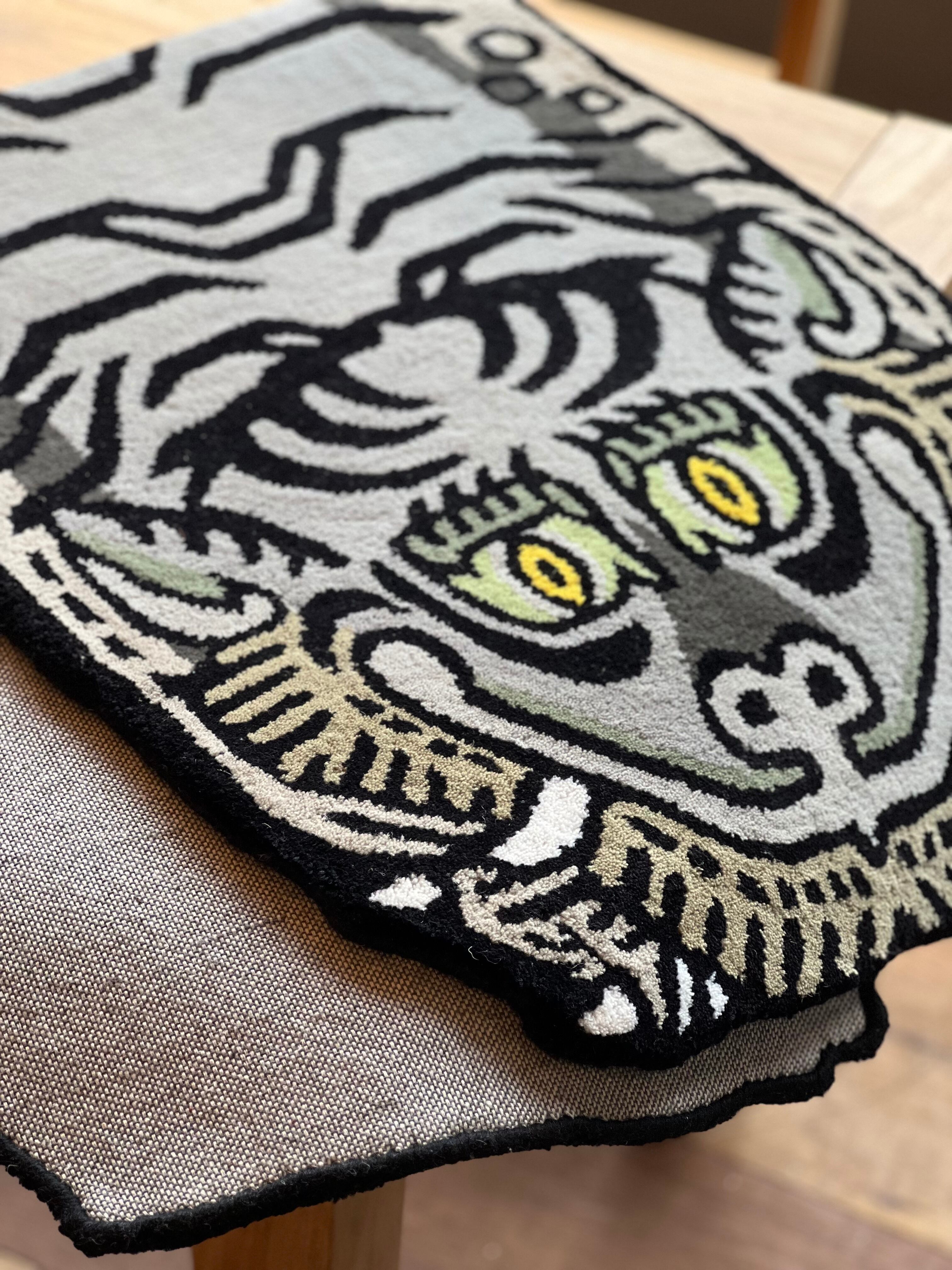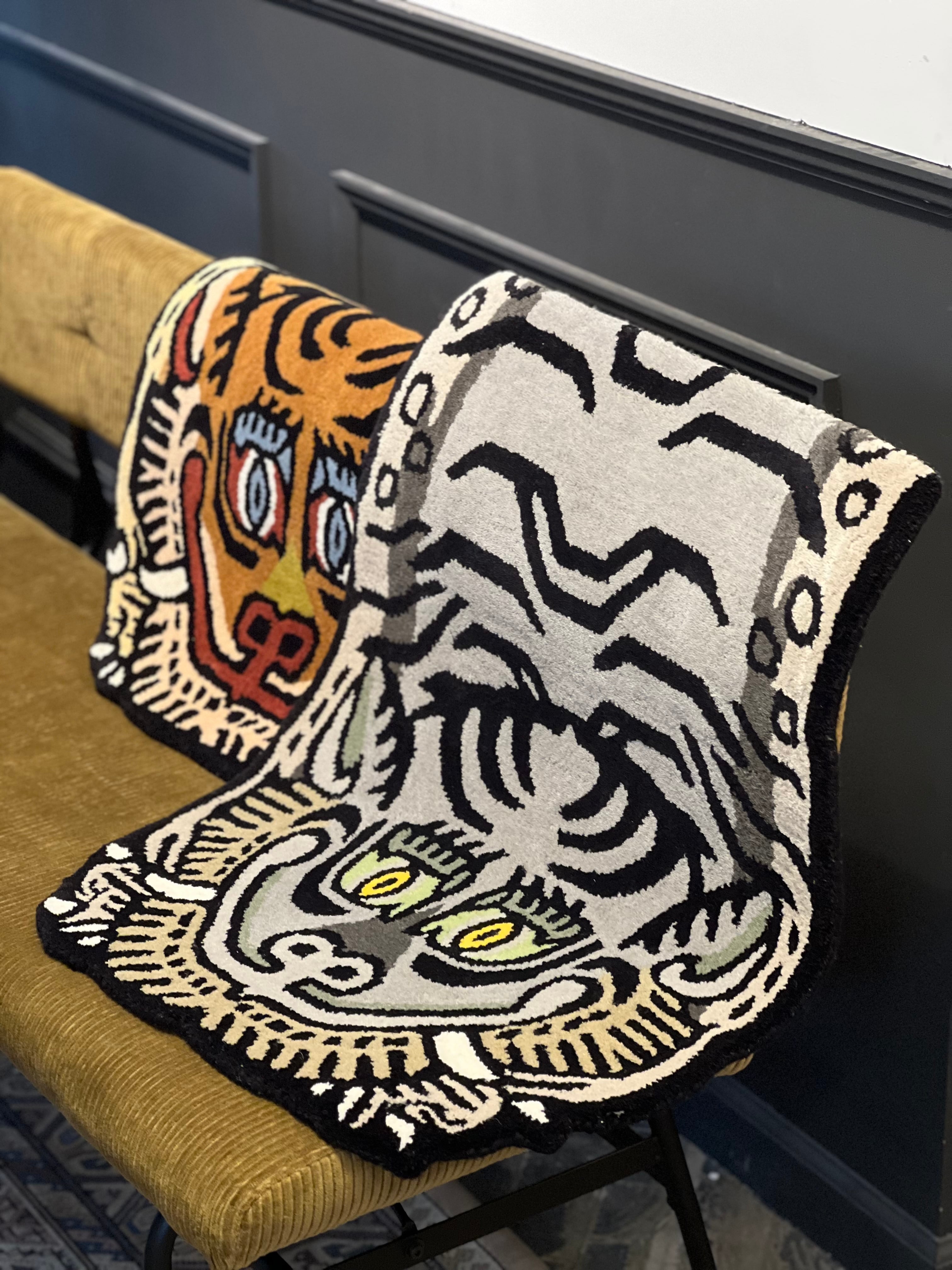 世界4大絨毯のひとつに数えられるチベットの絨毯の中でも、位の高い僧侶のためにつくられたという由緒正しきタイガーラグをモチーフにしたラグ。