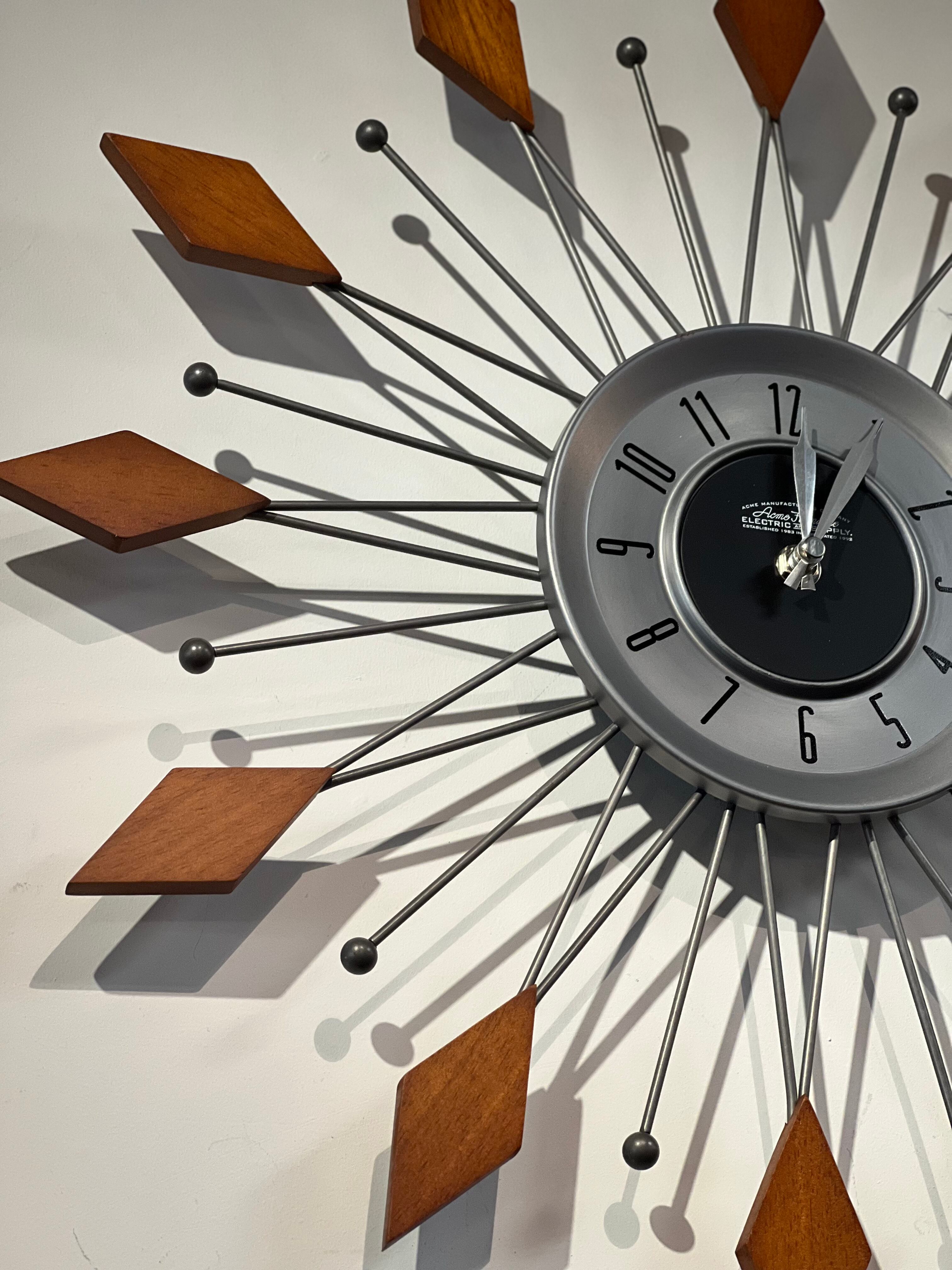 光り輝く太陽をモチーフとしてデザインされたサンバーストクロック。