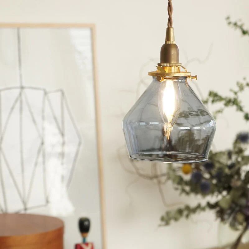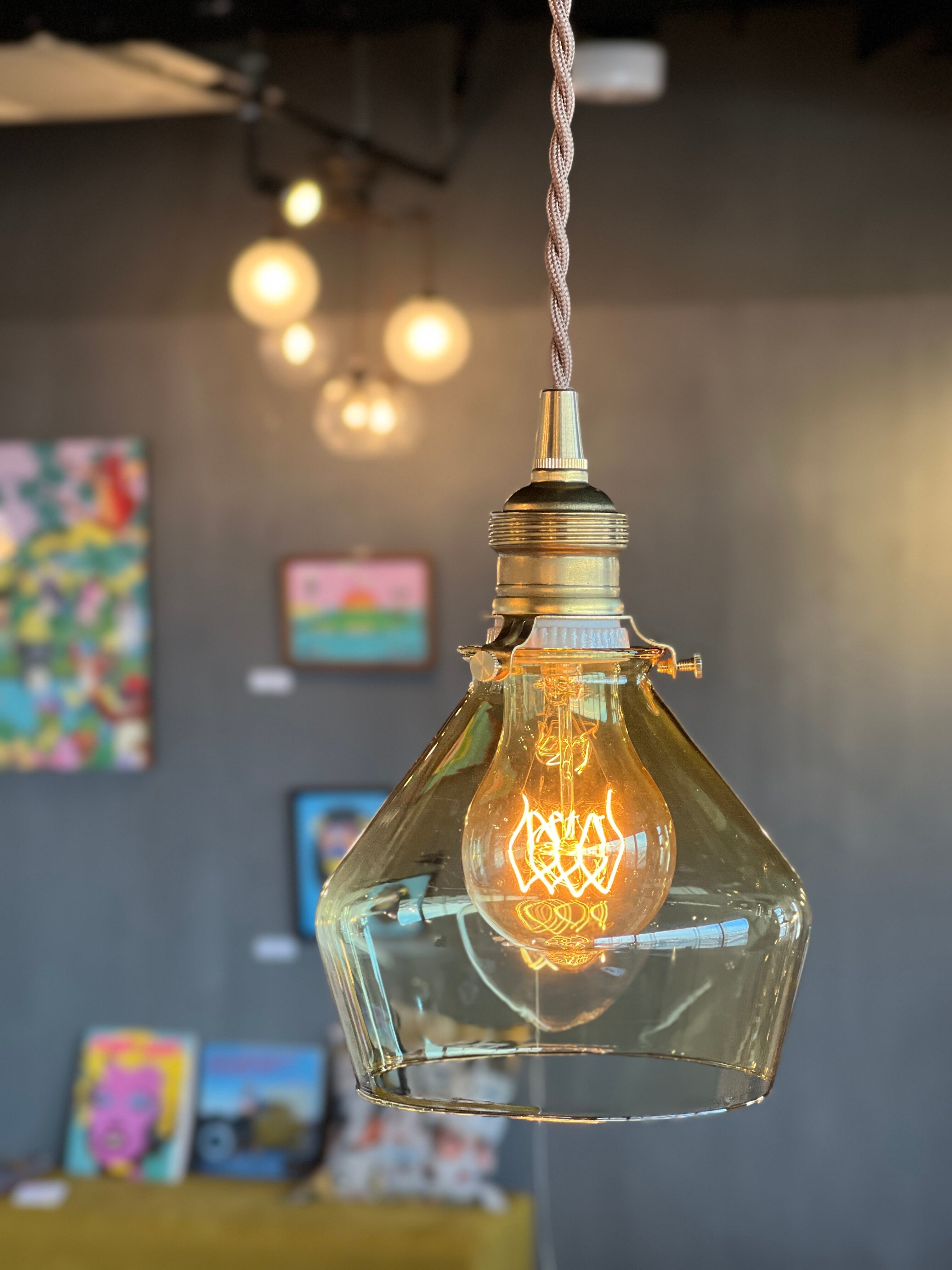ガラスは灯りを付ければシェードが光を通し、空間全体に明かりが広がります。昼間消灯している時も自然光を集めてきらきらと反射し、まるでオブジェのように存在感があります。大きすぎない程よいサイズなので、カウンターなどの多灯付けにもおすすめです。
