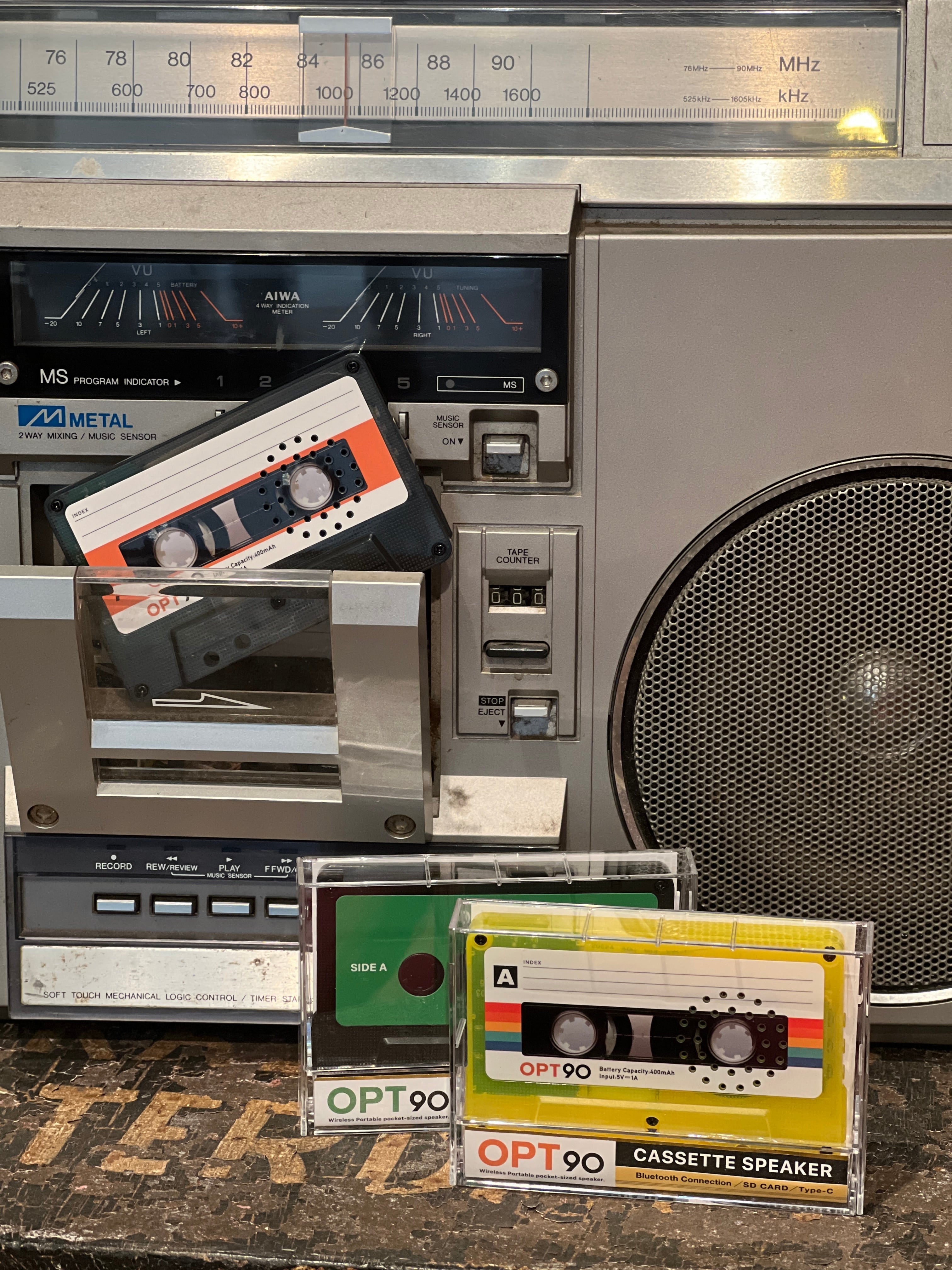 レトロでおしゃれなカセットテープ型のBluetoothスピーカー。