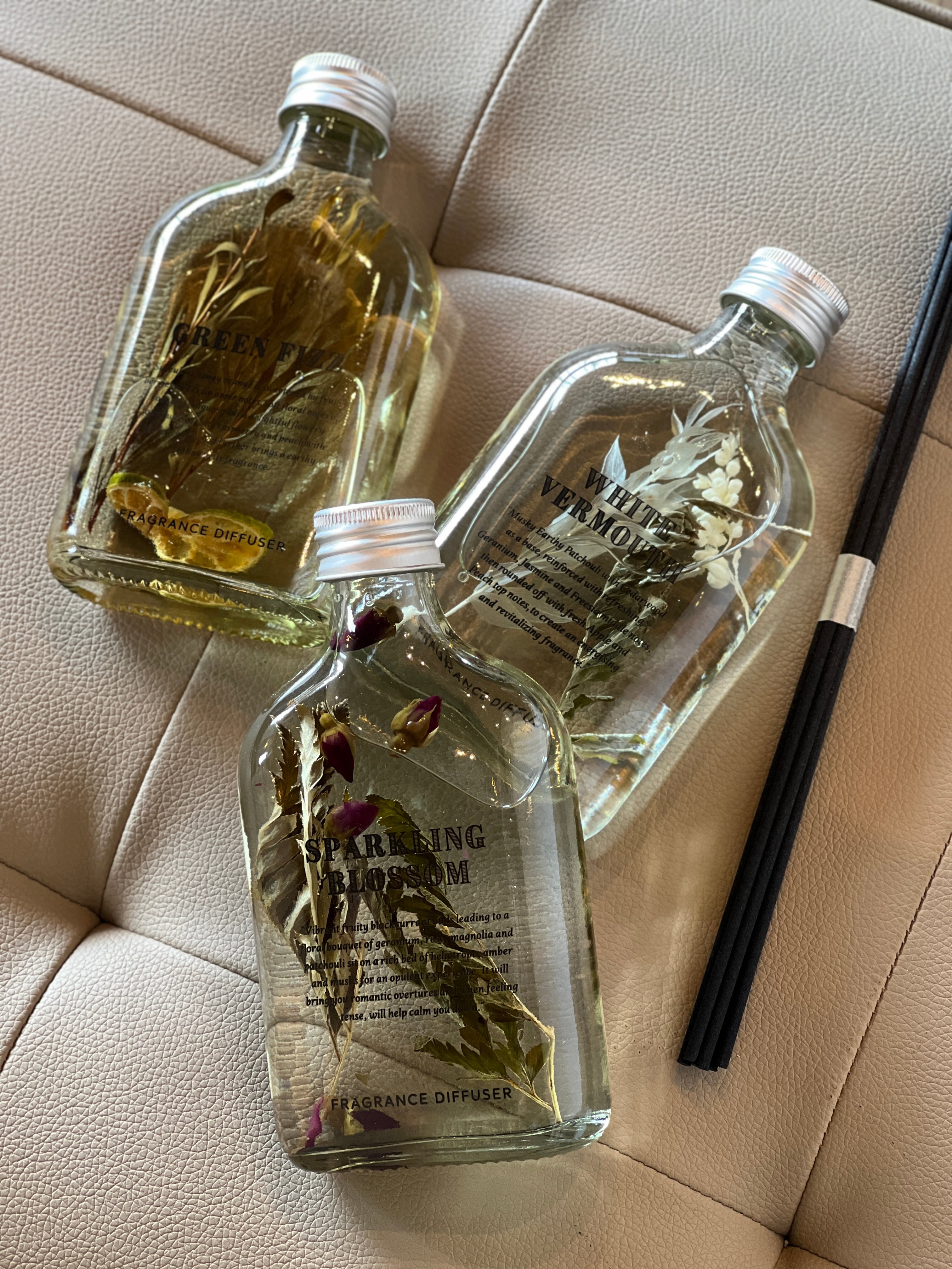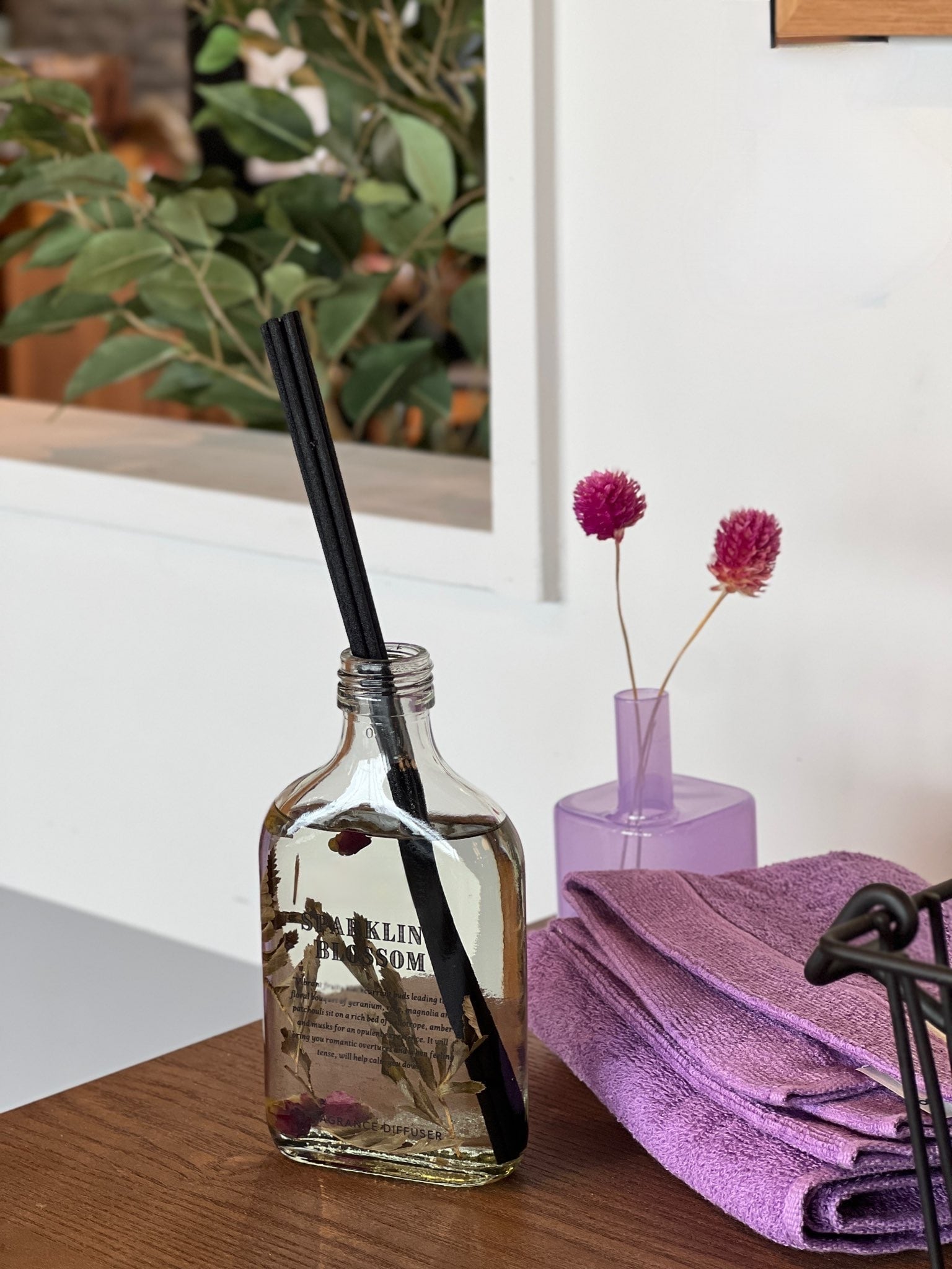 ゼラニウム、バラ、マグノリア、パチョリの華やかなフローラルのトップノートからブラックカラント、 豊かなムスクが香る、落ち着きのあるブレンドの香り