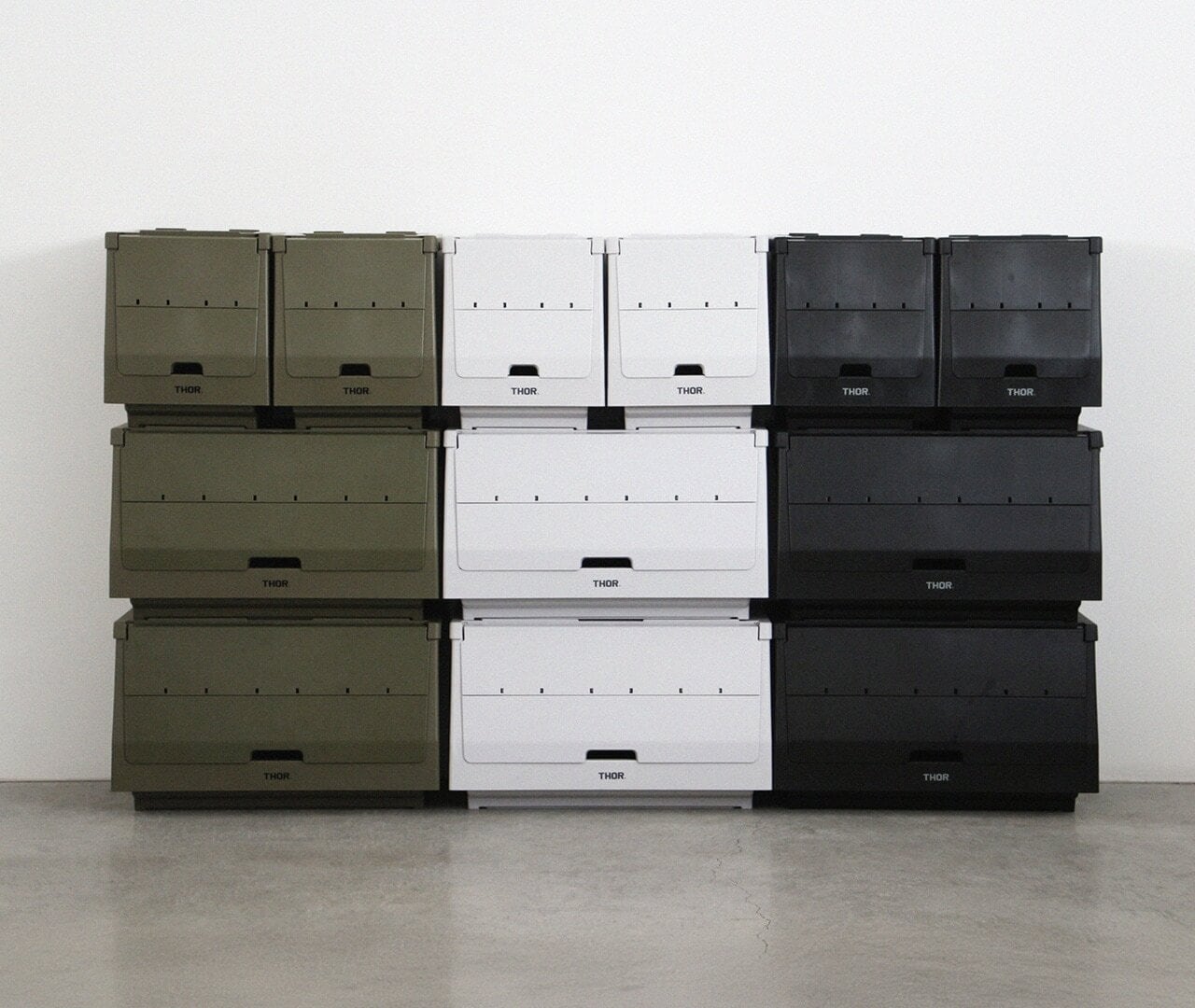 本体、 蓋、 扉を組み合わせて自分好みの棚を作ることができるTHORスタッキングシェルフ。